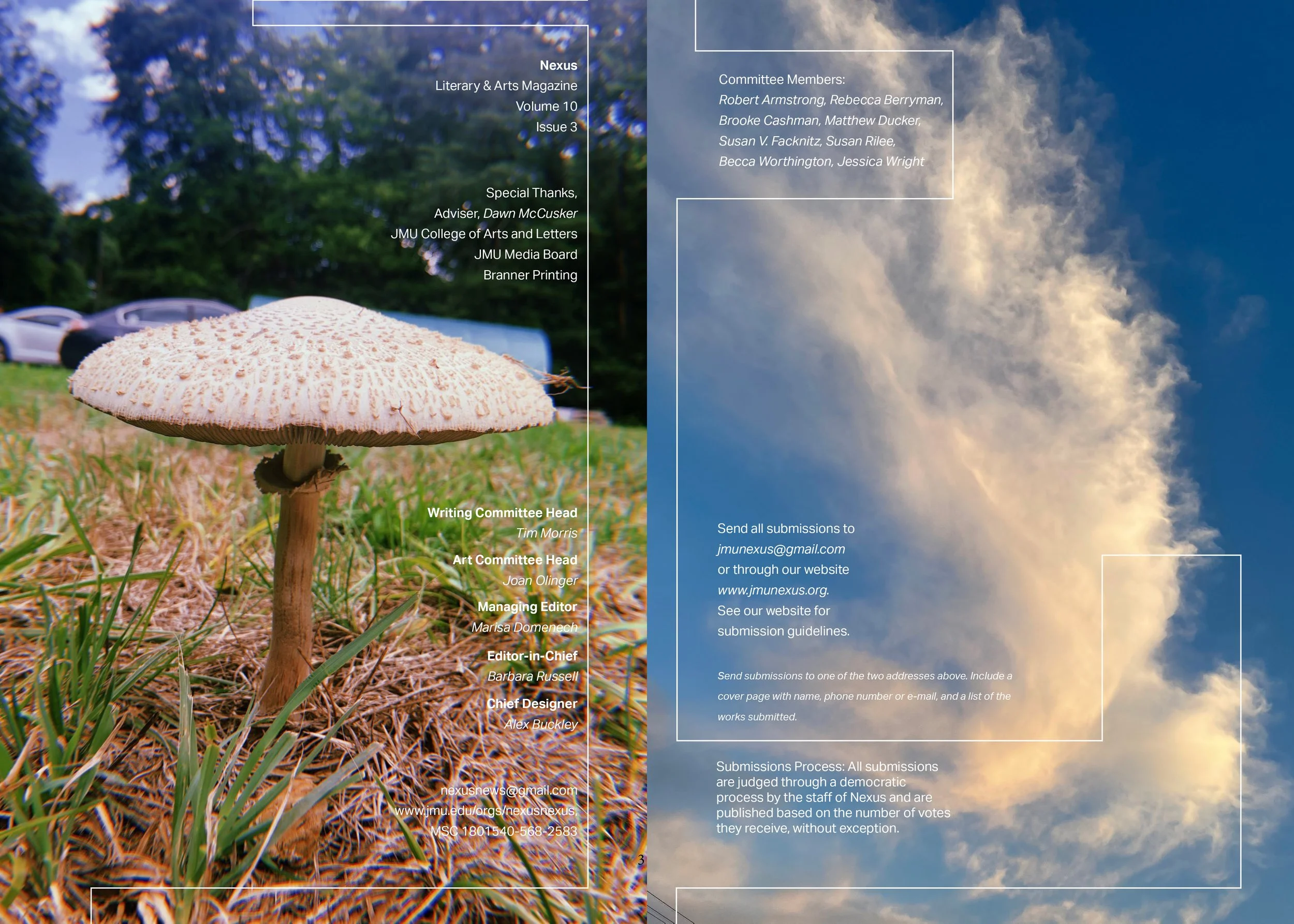 The first all student run and submitted literary arts magazine from my University. Created by and for students to connect different arts majors in their shared talent for creating. All images and short stories/poems are submitted by students and then pieces together in this one of a kind magazine.